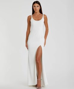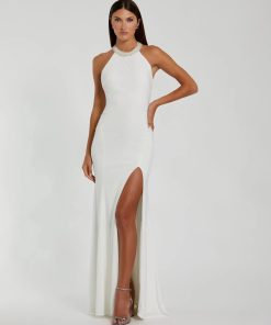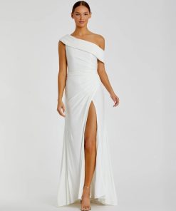 Mac Duggal Women’s Wedding White Foldover Off-the-shoulder Slit Gown – Final Sale | White