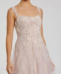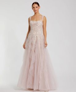 Mac Duggal Women’s Wedding Pink Bustier Tulle Ballgown With Ruffle Skirt | Porcelain Multi