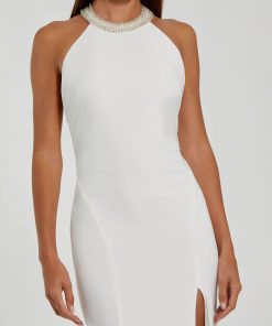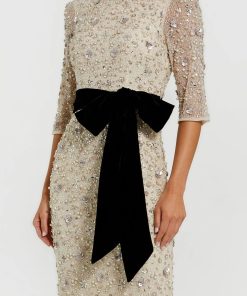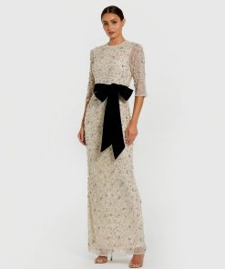 Mac Duggal Women’s Wedding Ivory Embellished Evening Gown With Velvet Bow | Oyster Black