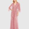Mac Duggal Women’s Dresses Beige Flutter Sleeve Floral Dress With Wrap Detail | Beige