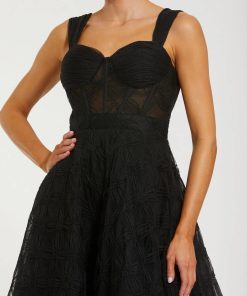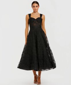 Mac Duggal Women’s Dresses Black Bustier Sleeveless A-line Tulle Midi Dress | Black
