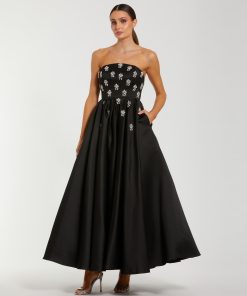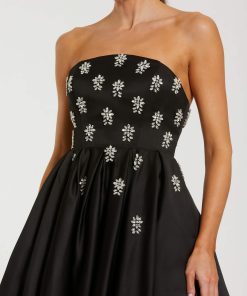 Mac Duggal Women’s Dresses Black Crystal Embellished Strapless Satin A-line Dress | Black