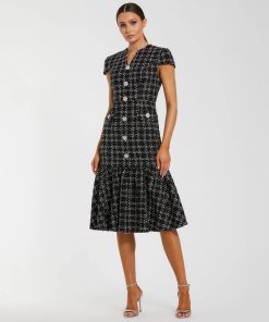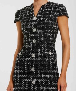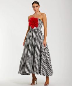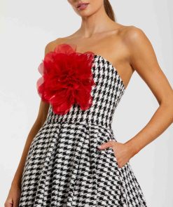 Mac Duggal Women’s Dresses Black And White Strapless Boucle A Line Midi Dress With 3d Flower | Black