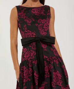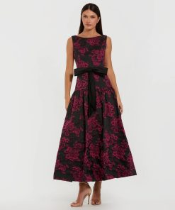 Mac Duggal Women’s Dresses Black Brocade Drop Waist Midi Dress With Satin Bow | Black