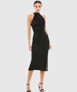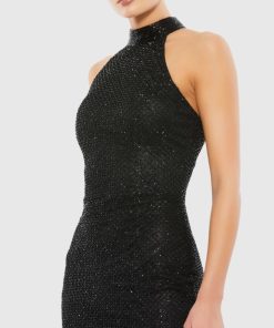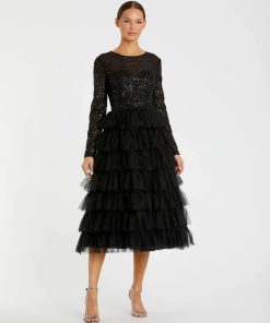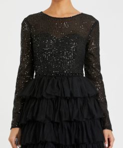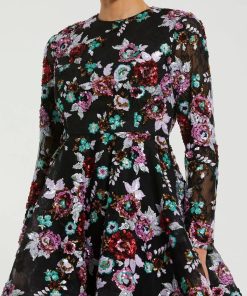 Mac Duggal Women’s Dresses Black High Neck Long Sleeve Sequin A Line Mini Dress | Black Multi