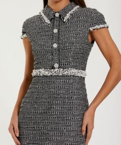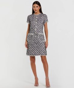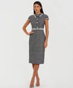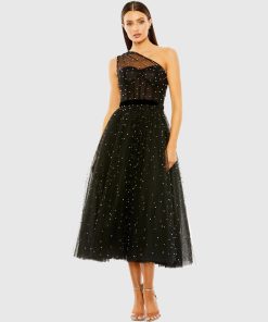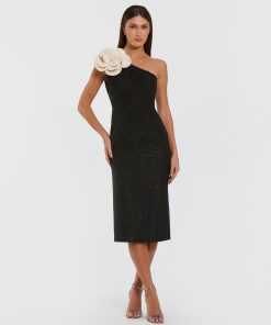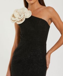 Mac Duggal Women’s Dresses Black One Shoulder Boucle Midi Dress With 3d Flower | Black