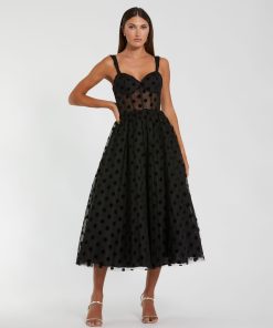 Mac Duggal Women’s Dresses Black Multicolor Strapless Micro Ruffle A Line Midi Dress | Black Multi