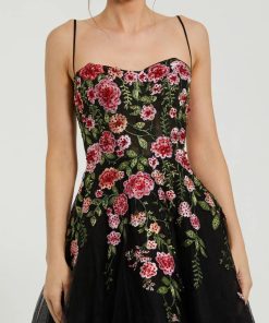 Mac Duggal Women’s Dresses Black Multicolor Bustier Embroidered Floral A-line Dress | Black Multi