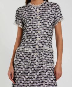 Mac Duggal Women’s Dresses Black Multicolor Cap Sleeve Floral Button Detail Shift Dress | Black