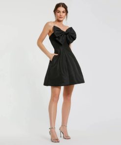 Mac Duggal Women’s Dresses Black Strapless Oversized Bow Fit u0026 Flare Mini Dress | Black