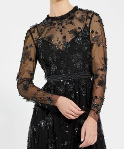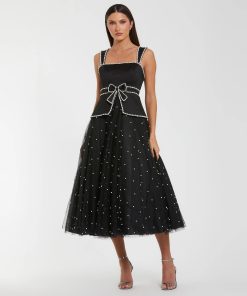 Mac Duggal Women’s Dresses Black Sleeveless Embellished Crepe And Tulle Midi Dress | Black