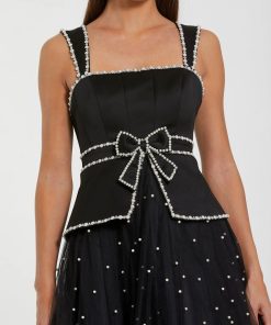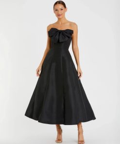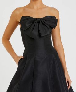 Mac Duggal Women’s Dresses Black Strapless A-line Tea Length Statement Bow Dress | Black