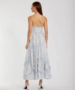 Mac Duggal Women’s Dresses Blue And White Strapless Ruffle Floral Cotton Midi Dress | Blue Multi