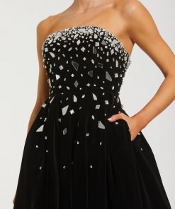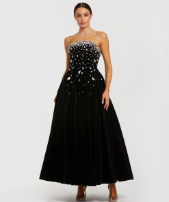 Mac Duggal Women’s Dresses Black Velvet Strapless A-line Midi Dress With Embellishments | Black
