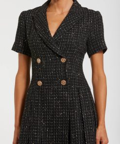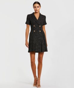 Mac Duggal Women’s Dresses Black Short Sleeve V Neck Tweed Blazer Mini Dress | Black