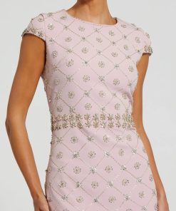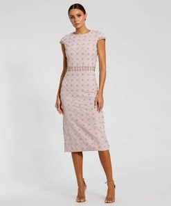 Mac Duggal Women’s Dresses Pink Cap Sleeve Sheath Midi Dress With Floral Beading | Vintage Lilac