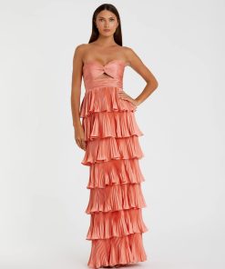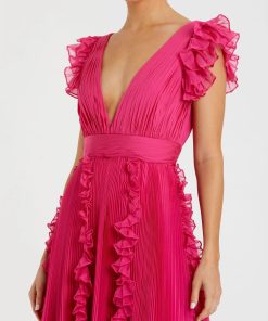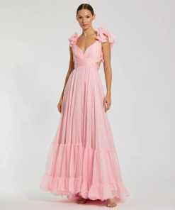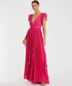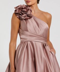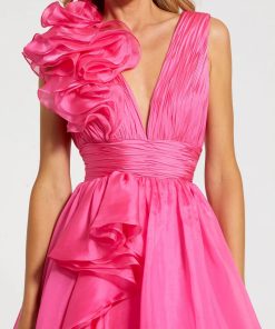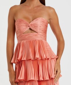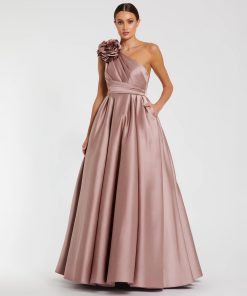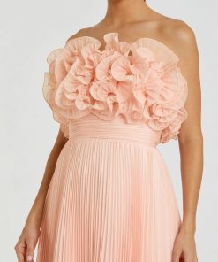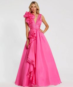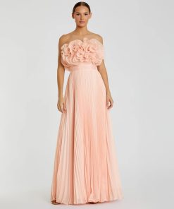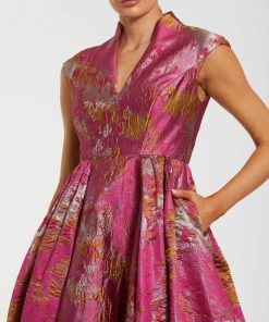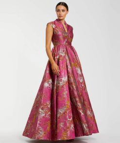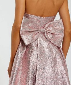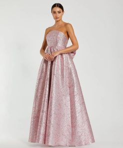 Mac Duggal Women’s Dresses Pink Metallic Strapless Brocade Gown With Oversized Bow | Raspberry