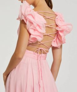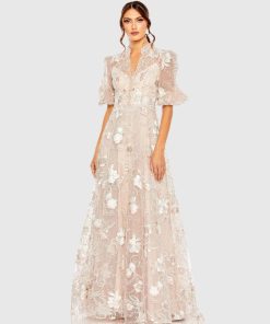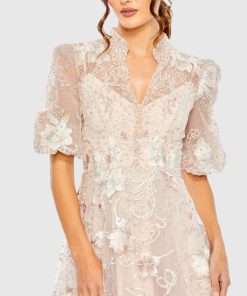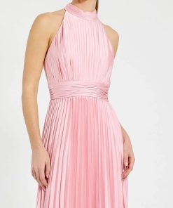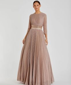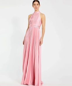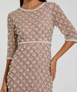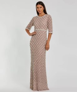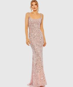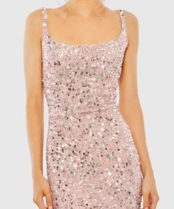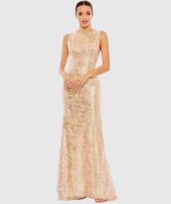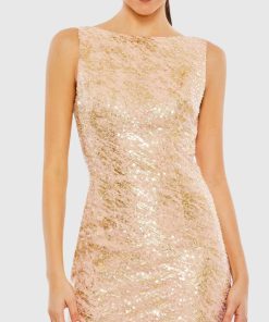 Mac Duggal Women’s Dresses Pink Metallic Sequin Boat Neck Trumpet Gown With Cowl Back | Blush