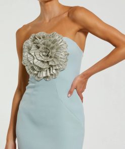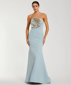 Mac Duggal Women’s Dresses Blue Strapless Crepe Trumpet Gown With 3d Rhinestone Flower | Powder Blue