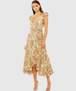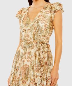 Mac Duggal Women’s Dresses Beige Flutter Sleeve Floral Dress With Wrap Detail | Beige
