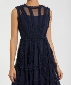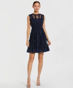 Mac Duggal Women’s Dresses Navy High Neck Sleeveless Micro Ruffle Mini Dress | Indigo