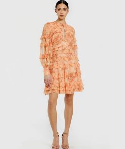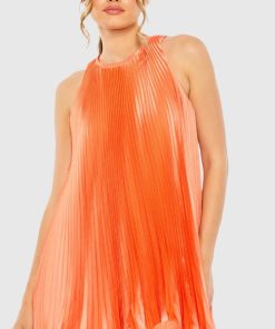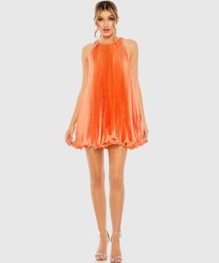 Mac Duggal Women’s Dresses Orange Pleated Halter Neck Flowy Mini Trapeze Dress | Orange