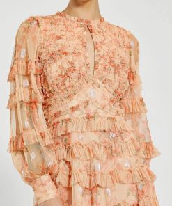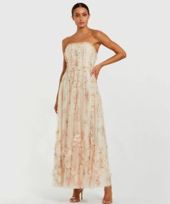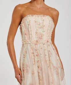 Mac Duggal Women’s Dresses Pink And White Strapless Floral Ruffle Dress | Ivory Multi