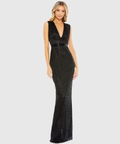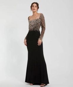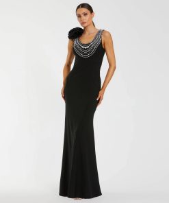 Mac Duggal Women’s Dresses Black And White Stretch Crepe Mermaid Gown With 3d Flowers | Black Cream