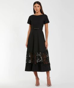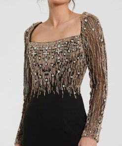Mac Duggal Women’s Dresses Black Brocade Drop Waist Midi Dress With Satin Bow | Black