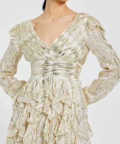 Mac Duggal Women’s Dresses Strapless Brocade Floral Ball Gown With Bow Detail | Champagne Multi