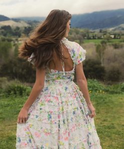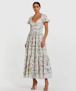 Mac Duggal Women’s Dresses White Floral Chiffon Ruffle Tiered Cut-out Midi Dress | White