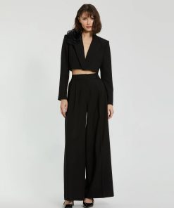 Mac Duggal Women’s Black Classic Crepe Wide Leg High Waisted Trouser Pant – Final Sale | Black