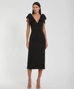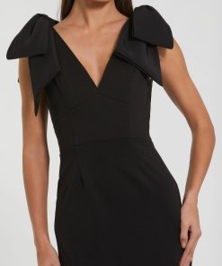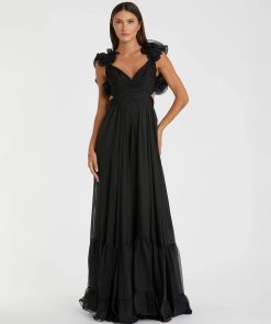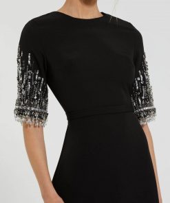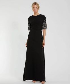 Mac Duggal Women’s Wedding Black Embellished Beaded Column Cape Gown | Black