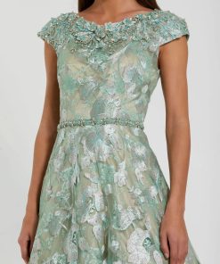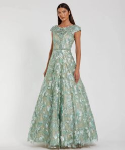 Mac Duggal Women’s Wedding Green Floral Embroidered Short Cap Evening Gown | Seamist