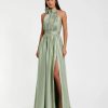 Mac Duggal Women’s Wedding Green Foldover Off-the-shoulder Slit Gown | Green