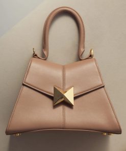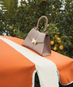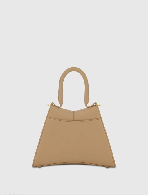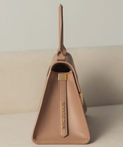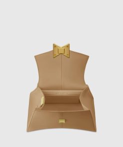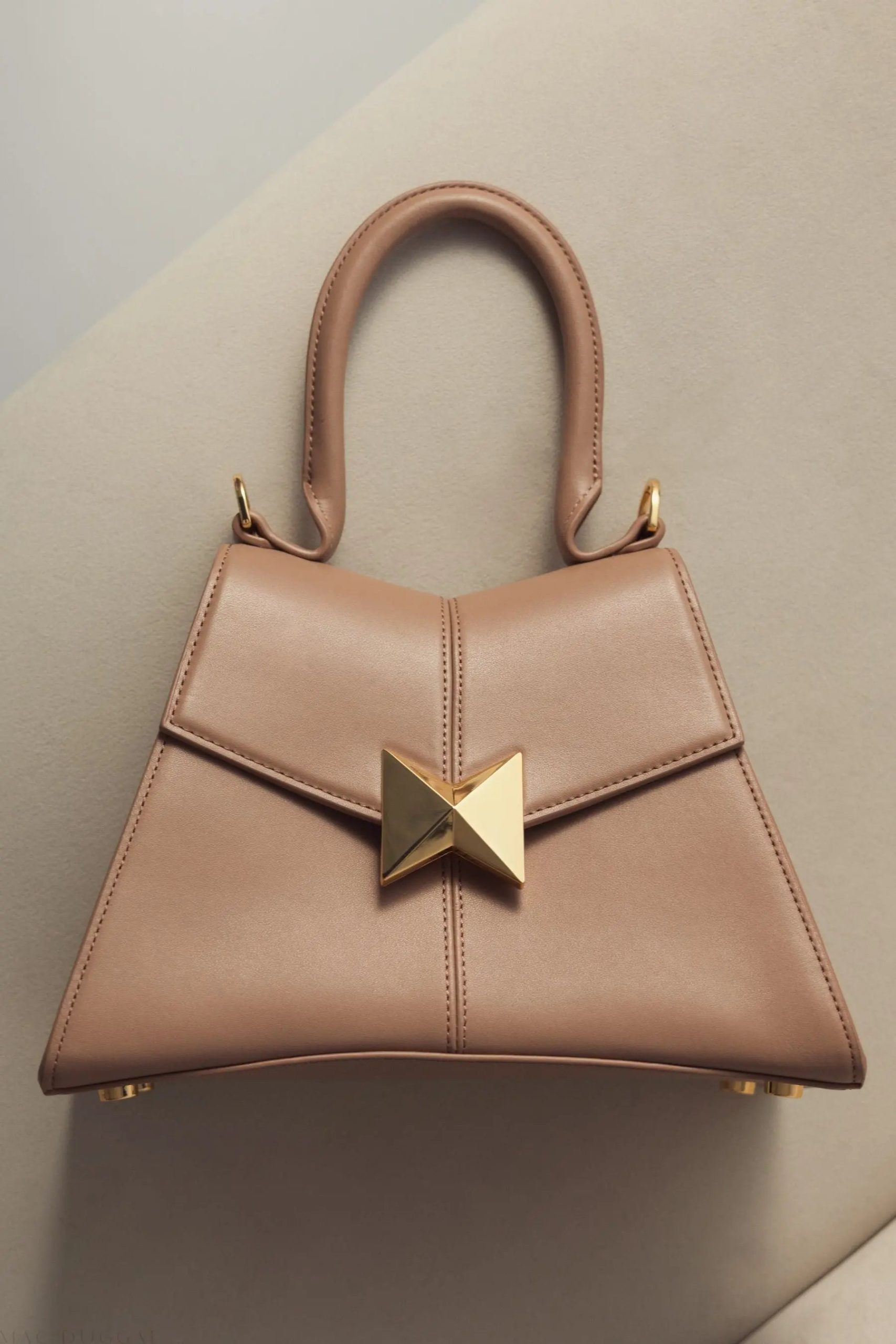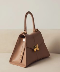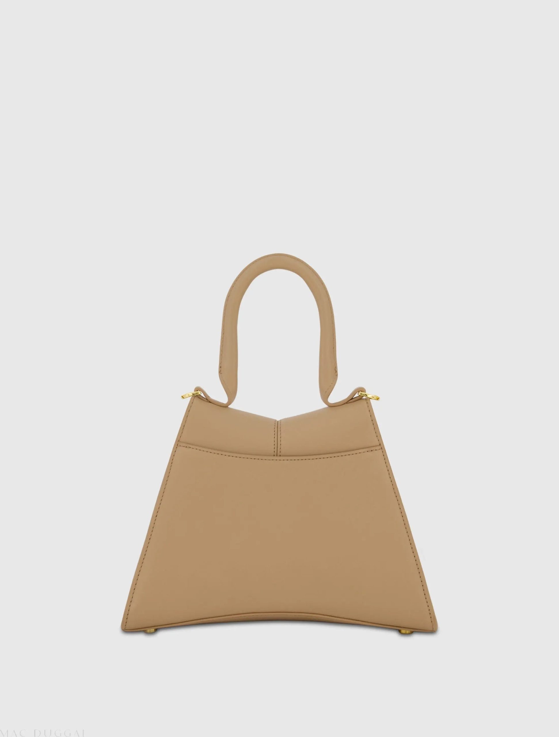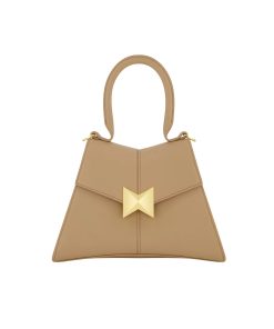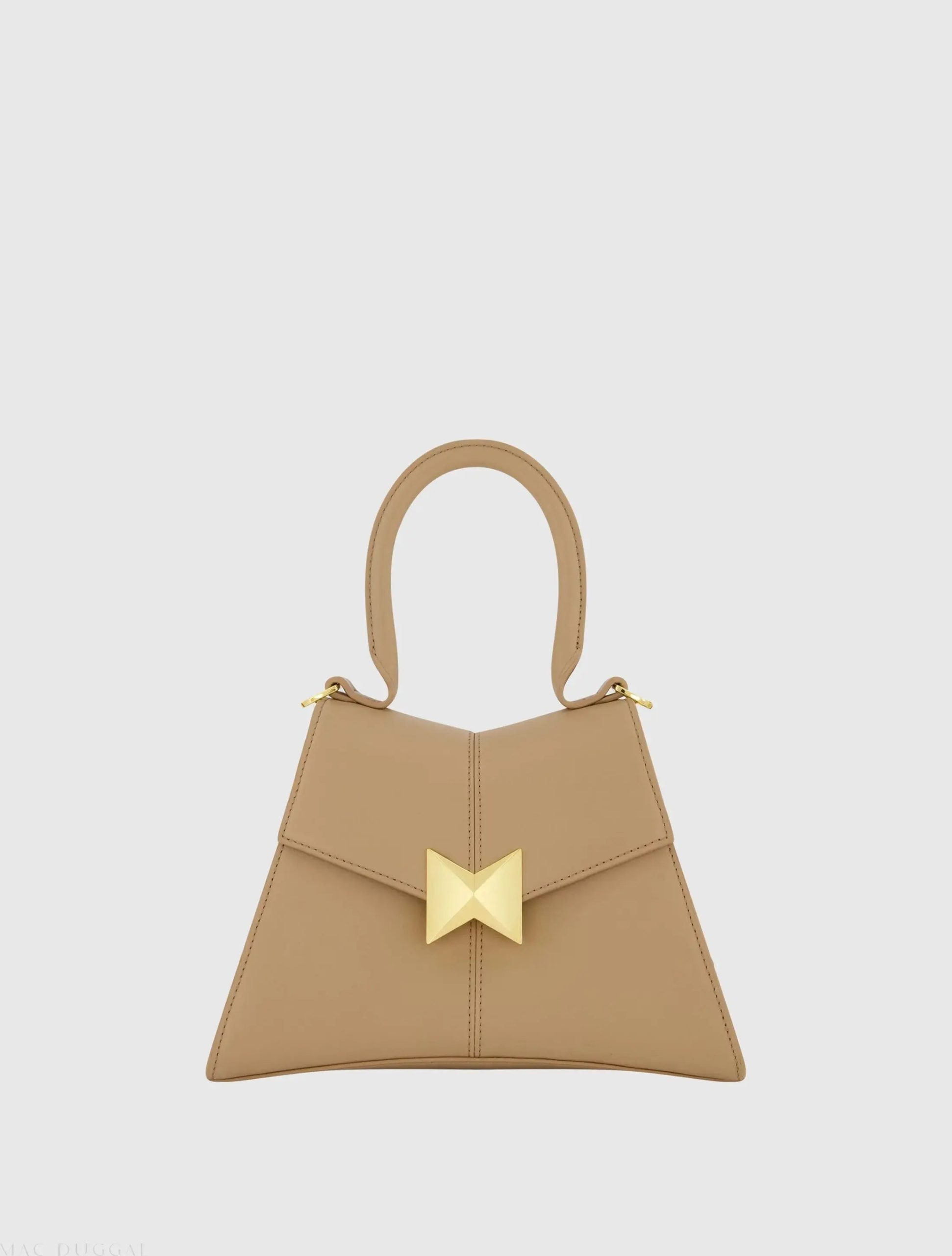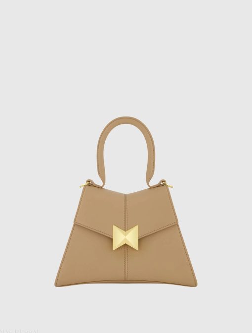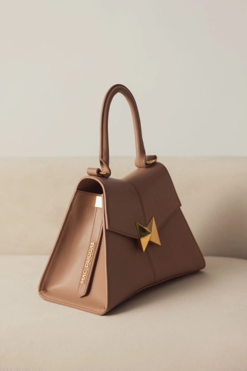Mac Duggal Women’s Bags Brown Angular Small Leather Handbag With Gold Hardware | Taupe