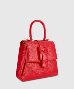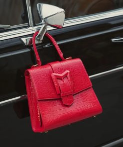 Be the first to review “Mac Duggal Women’s Bags Red Buckled Medium Croco Leather Handbag With Detachable Strap | Cherry” Cancel reply