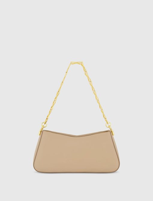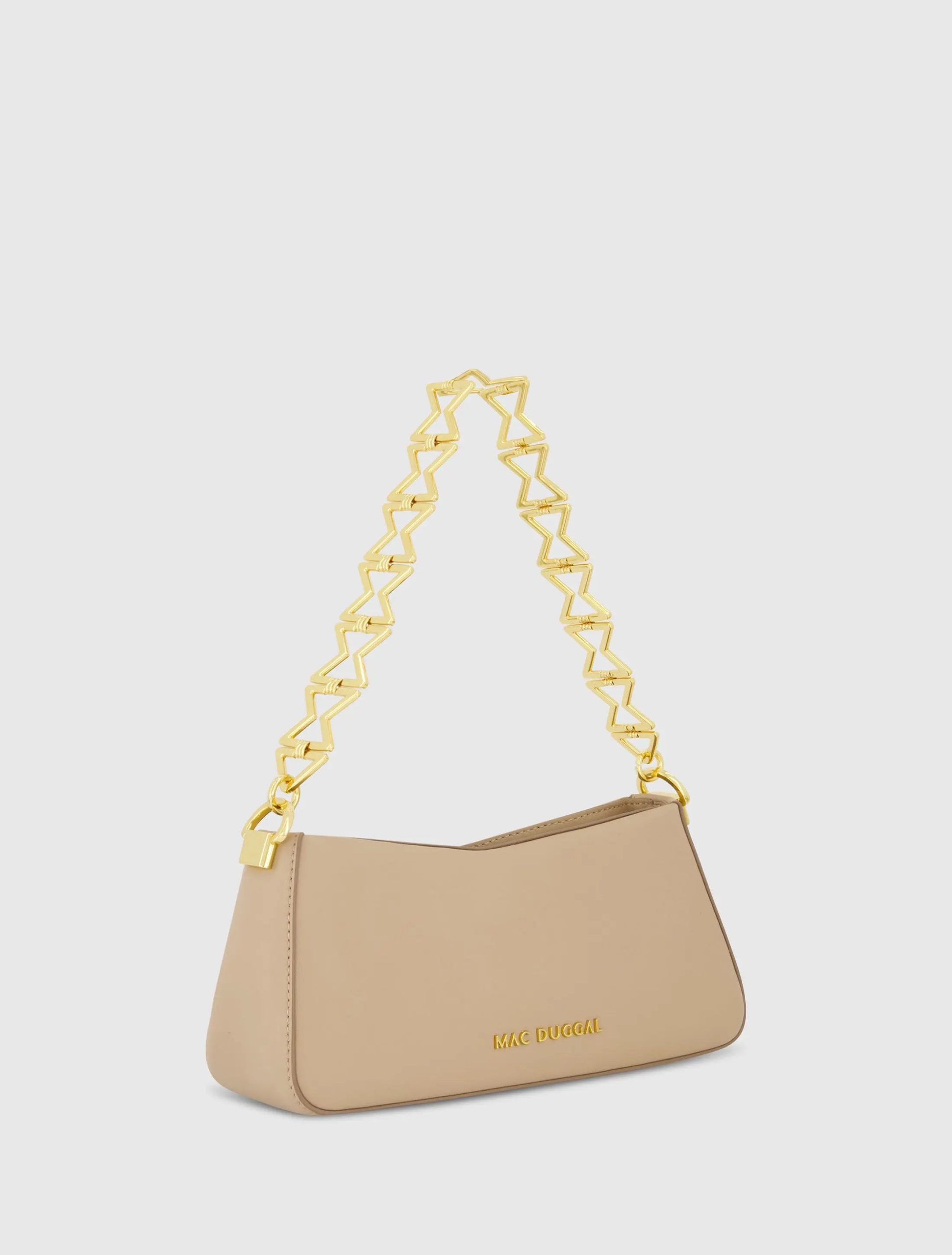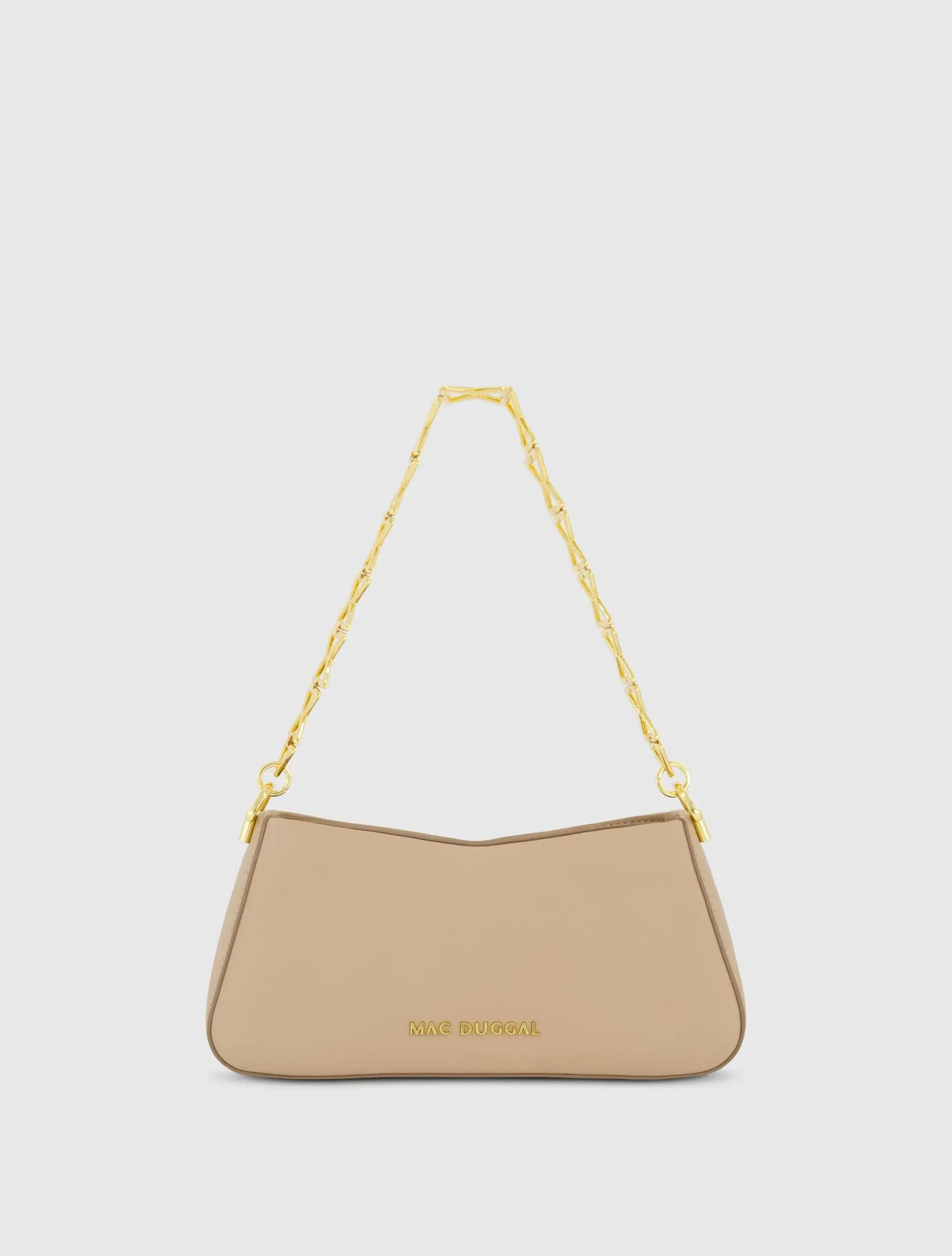 Mac Duggal Women’s Beige Small Gold Strap Nappa Leather Shoulder Bag | Taupe