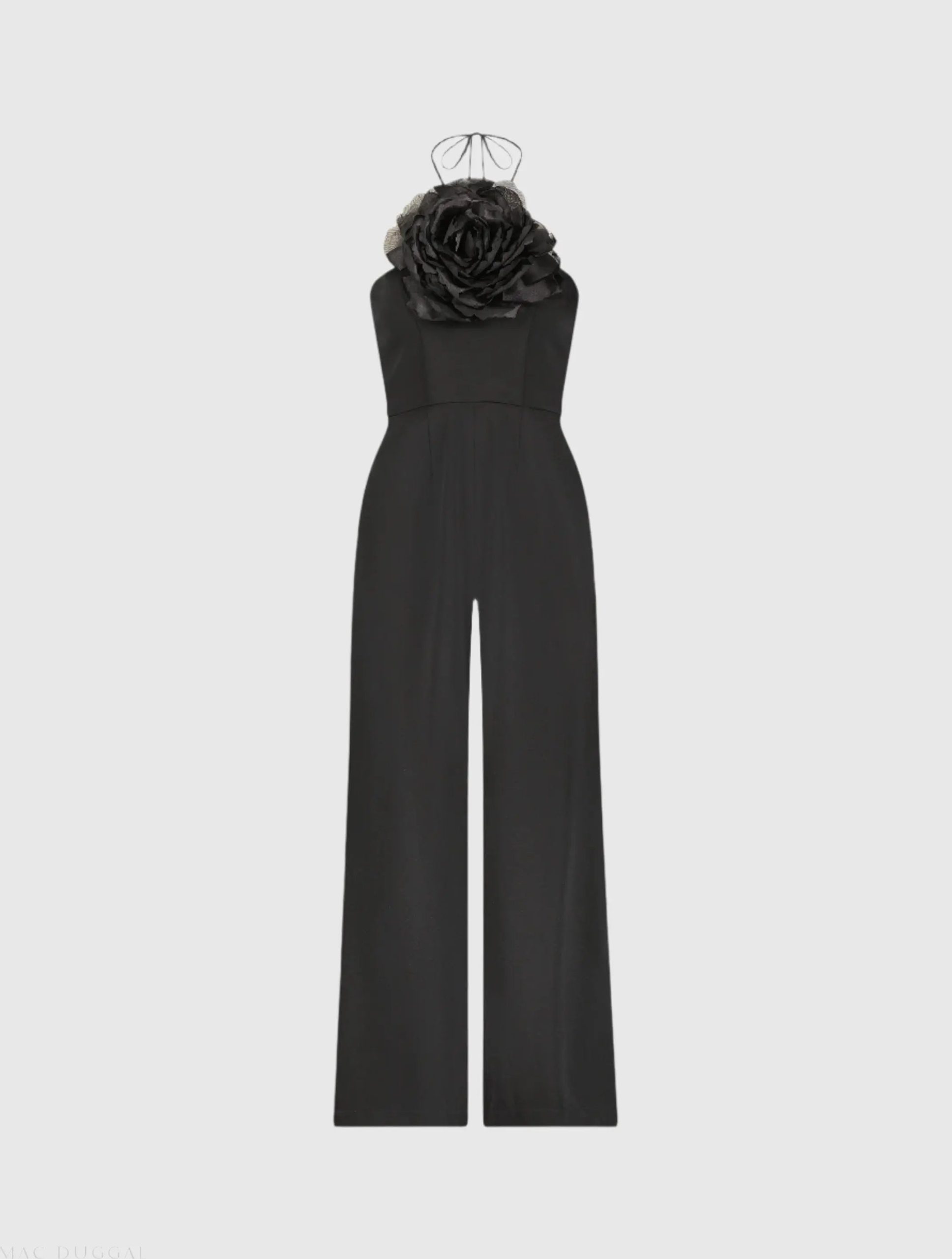 Mac Duggal Women’s Black Crepe Halter Neck Jumpsuit With Flower | Black