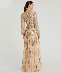 Be the first to review “Mac Duggal Women’s Dresses Beige Embellished Mesh Long Sleeve V Neck Gown | Bisque” Cancel reply