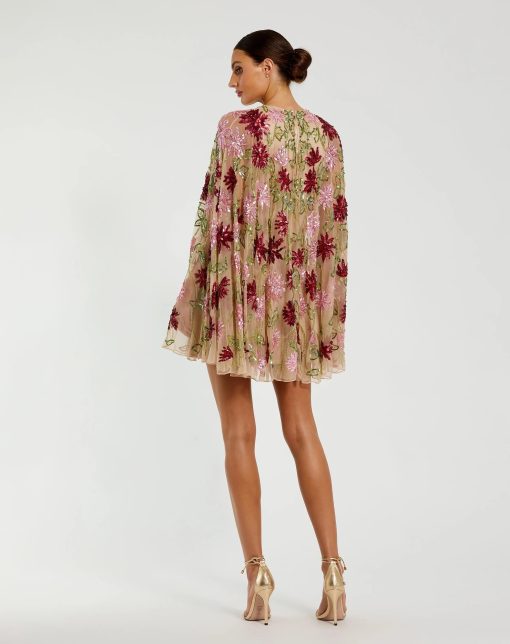 Mac Duggal Women’s Dresses Beige Floral Embellished Shawl Mini Dress | Nude Multi