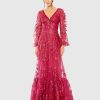 - Partially lined bodice; fully lined through skirt; sheer unlined sleeves