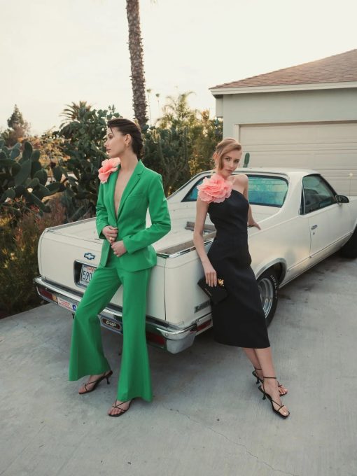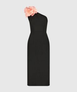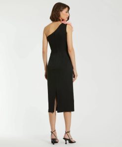 Be the first to review “Mac Duggal Women’s Dresses Black Crepe One Shoulder Midi Dress With Flower | Black” Cancel reply