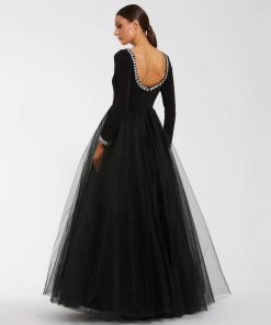 Be the first to review “Mac Duggal Women’s Dresses Black Embellished Jersey Long Sleeve Ballgown With Tulle Skirt | Black” Cancel reply