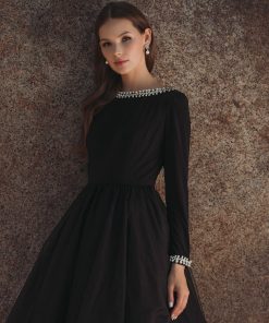 - Long fitted sleeves with matching embellished hems