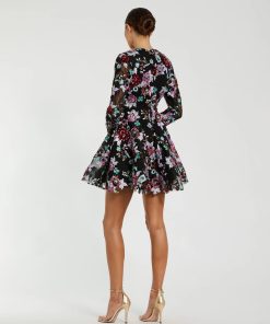 Shine bright in our High Neck Long Sleeve Sequin A-Line Mini Dress. With its dazzling sequin detailing and flattering A-line silhouette, this dress is perfect for making a statement at any special occasion.