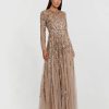 - Hand-embellished/embroidered tulle overlay; 100% polyester lining