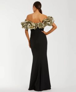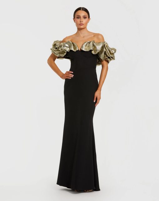 Mac Duggal Women’s Dresses Black Mermaid Gown With Off The Shoulder Ruffle Detail | Black