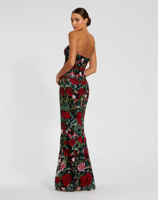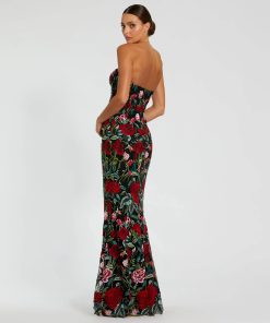 Mac Duggal Women’s Dresses Black Sheer Bustier Top Floral Applique Gown | Black Multi