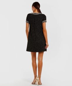 Mac Duggal Women’s Dresses Black Short Sleeve Embellished Boucle Mini Dress | Black